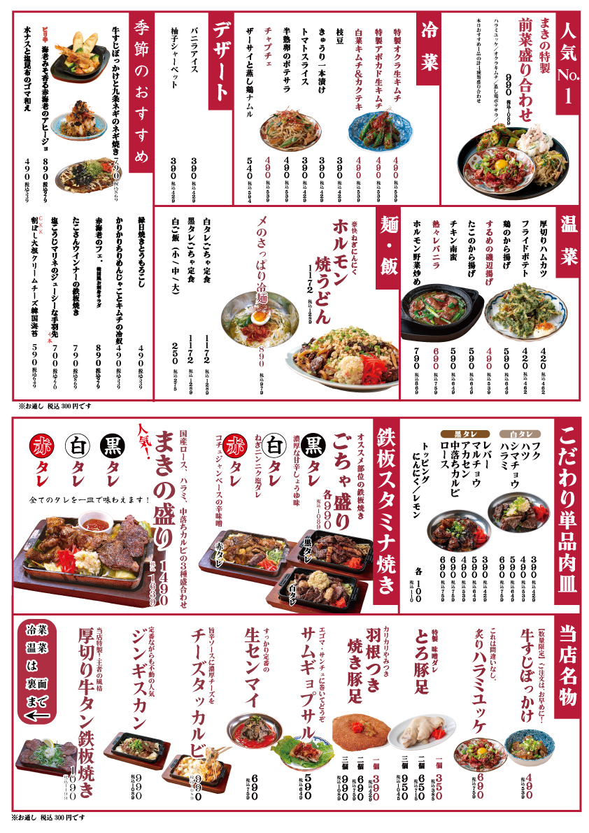 9月18日(水)開店予定 当店では、小皿で楽しめる焼肉は色々なホルモンや赤身を楽しむことができます! ボリューム満点のホルモンうどん、ジュワっと口の中で広がる焼き豚足、 お酒が進む料理が充実!お仕事帰りにサクっとホルモンをつまみに飲むのも良し。 友人や同僚と飲み放題でしっかり乾杯するのも良し。 明日を気にせず、名物の「溺れにんにくのタッカルビ」で精力上げるも良し。 皆様のご来店をお待ちしております♪ |