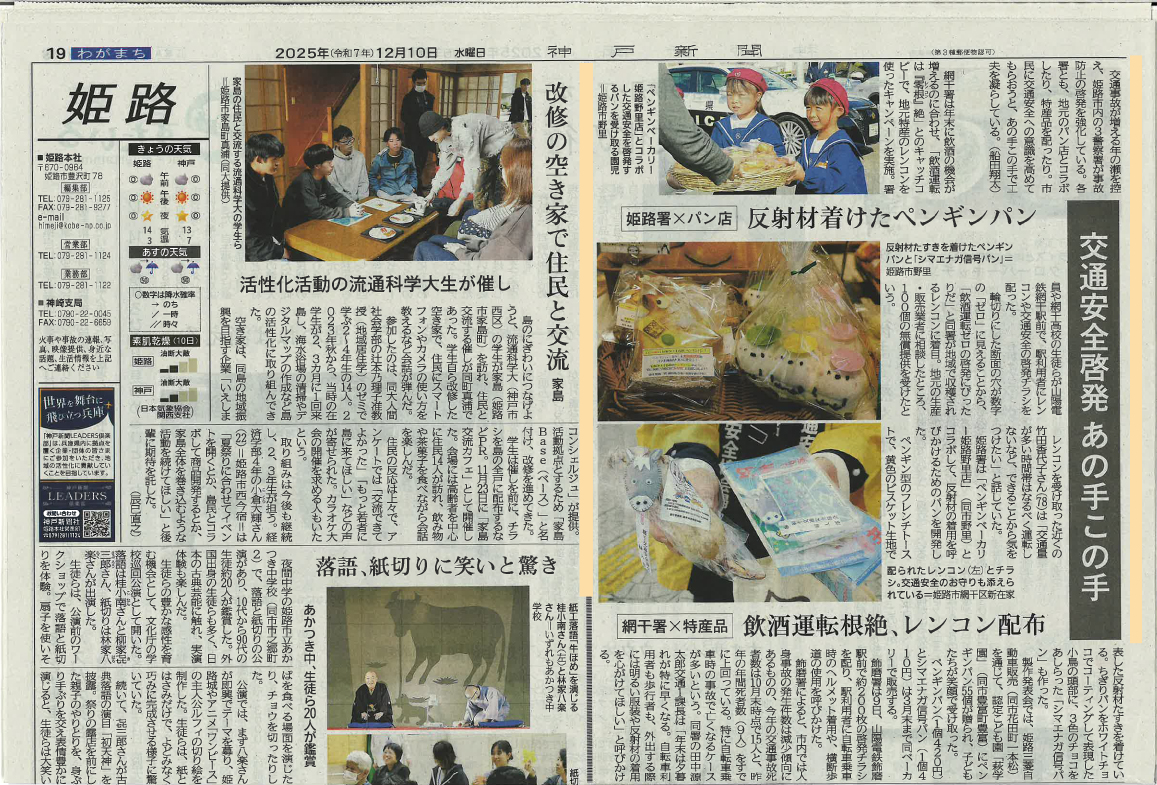 | 2025.12.1 姫路警察署&ペンギンベーカリー姫路野里店のコラボパンで交通事故防止の啓発強化に協力しました |